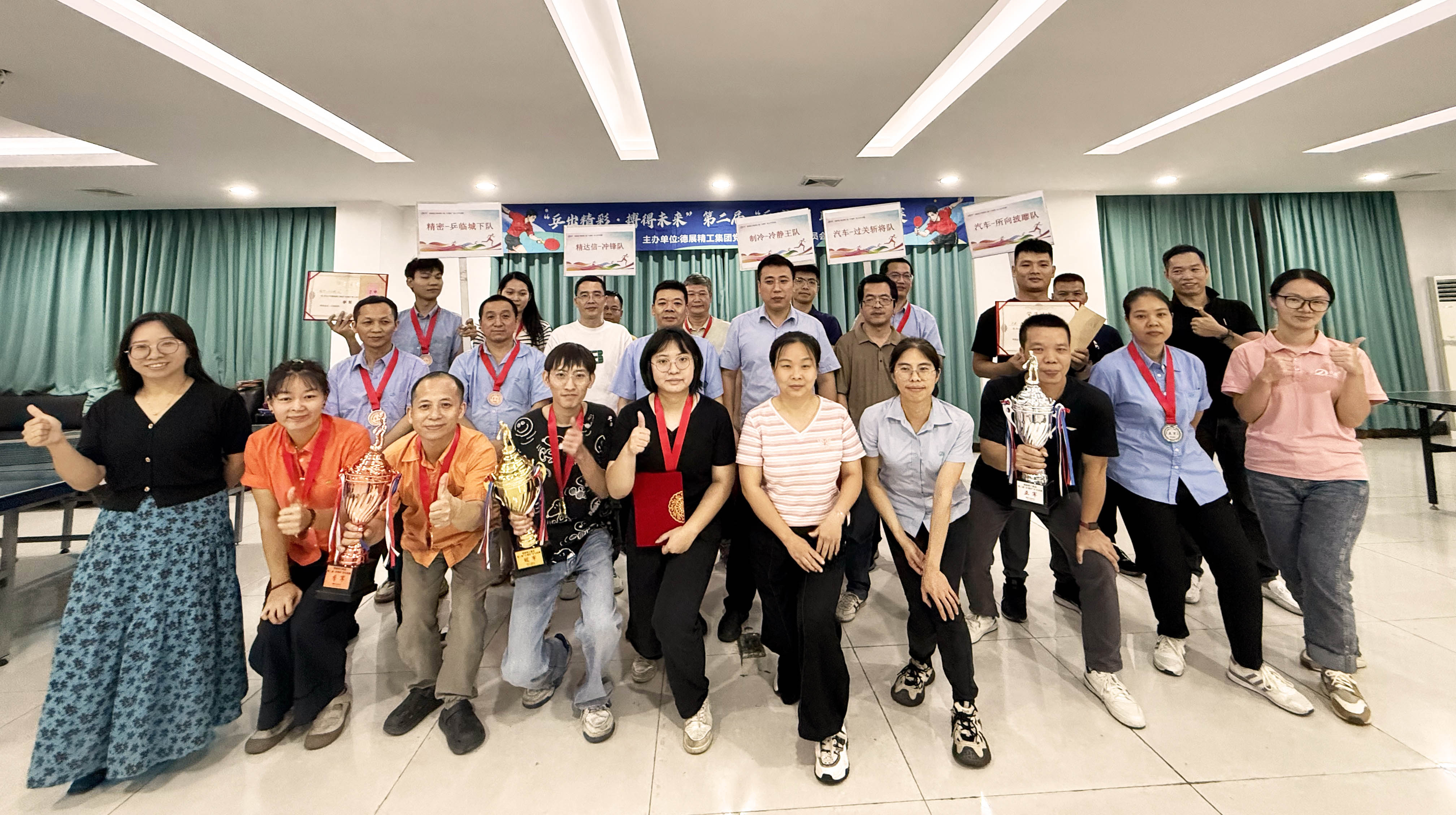 经过激烈鏖战最终由技术娴熟、配合默契的精密-乒临城下队荣获季军;由实力强劲、表现卓越的汽车-所向披靡队荣获亚军;勇夺桂冠的是技术精湛、团结一心的精达信-冲锋队。